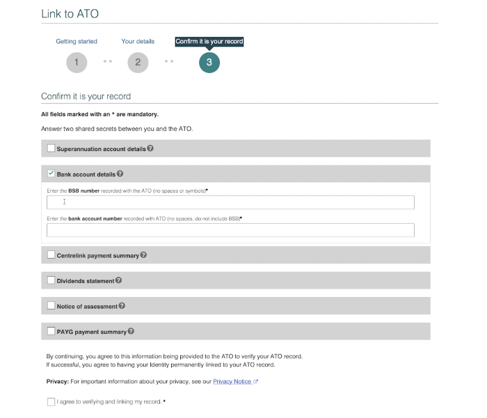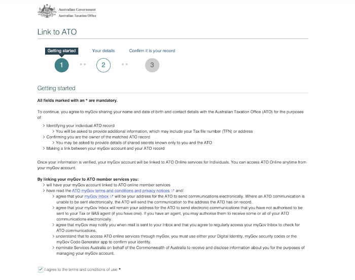 myGov와 ATO를 연동하기 위해서는 세금 기록에 대한 2가지 질문에 답변을 해야 합니다.